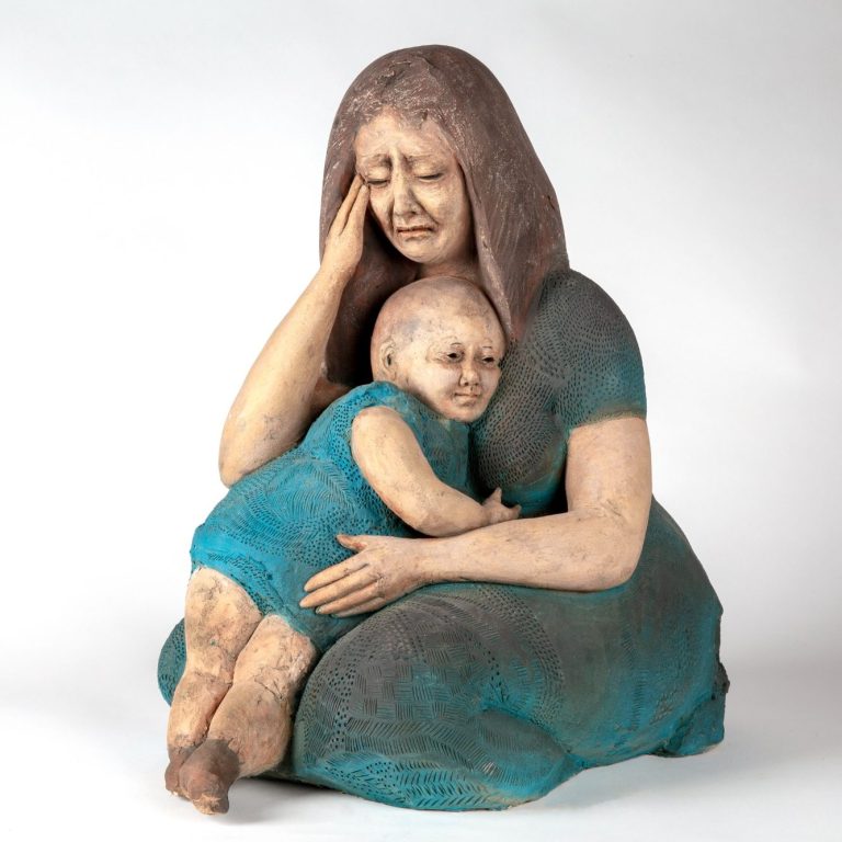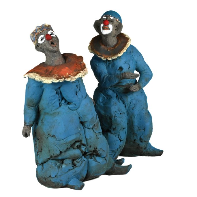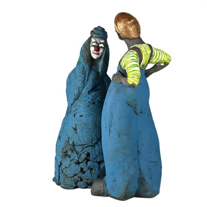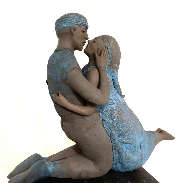 Des humains ici le Baiser, que je modèle dans l'argile et que je cuis en deux fois: la première à 980°pour obtenir un biscuit , ensuite je pose des minéraux pour obtenir de la couleur et je recuis à 1300°. Le reste est une expérience d'une vie consacrée à cet art aussi vieux et beau que l'humanité. Je crois que Dieu a fait comme ça, dit-on.